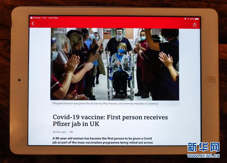 當日,英國開始接種新冠疫苗,將優(yōu)先接種護理院人員、80歲以上人士以及一線醫(yī)護和社會工作者,然后才給其他人群提供接種服務,屆時還會按照年齡和感染風險來決定接種的先后順序。英國政府12月2日宣布,該國的監(jiān)管機構已批準德國生物新技術公司與美國輝瑞制藥有限公司合作研發(fā)的新冠疫苗投入使用,這也是首款在英國獲批使用的新冠疫苗。
