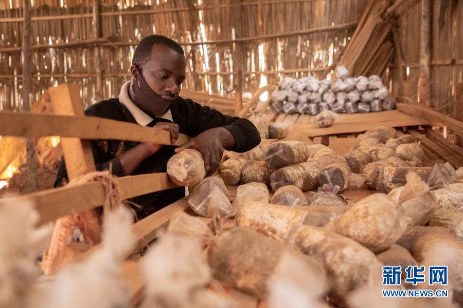 經(jīng)過4年發(fā)展,這家小作坊的菌袋生產(chǎn)能力從最初的每月1500包提升到現(xiàn)在的1萬包,培育出的食用菌批發(fā)給當(dāng)?shù)夭耸袌觥⒊泻筒蛷d,還遠(yuǎn)銷到盧旺達(dá)鄰國烏干達(dá)和剛果(金)。
