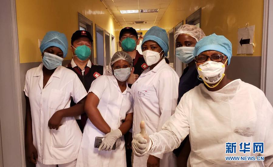5月26日,中國抗疫醫(yī)療專家組在剛果(布)首都布拉柴維爾指導新冠肺炎病房建設時,與當地一線醫(yī)務人員合影。新華社發(fā)