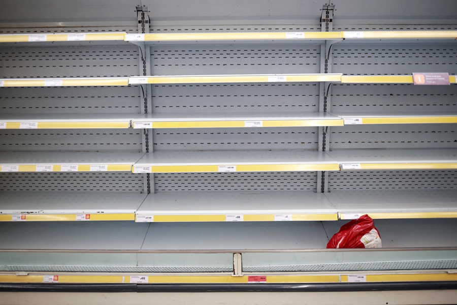 這是12月21日在英國倫敦一家商店拍攝的貨架上最后一袋火雞。(新華社/路透)