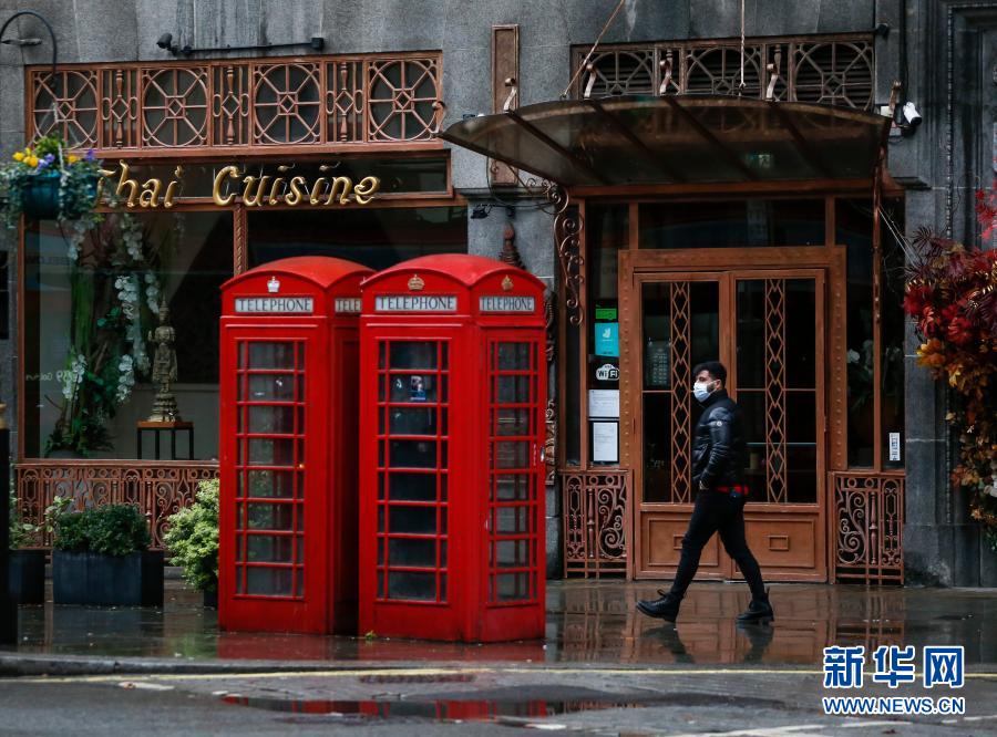 12月21日,一名戴口罩的男子經(jīng)過英國倫敦特拉法加廣場(chǎng)旁一家關(guān)閉的餐廳。新華社記者 韓巖 攝