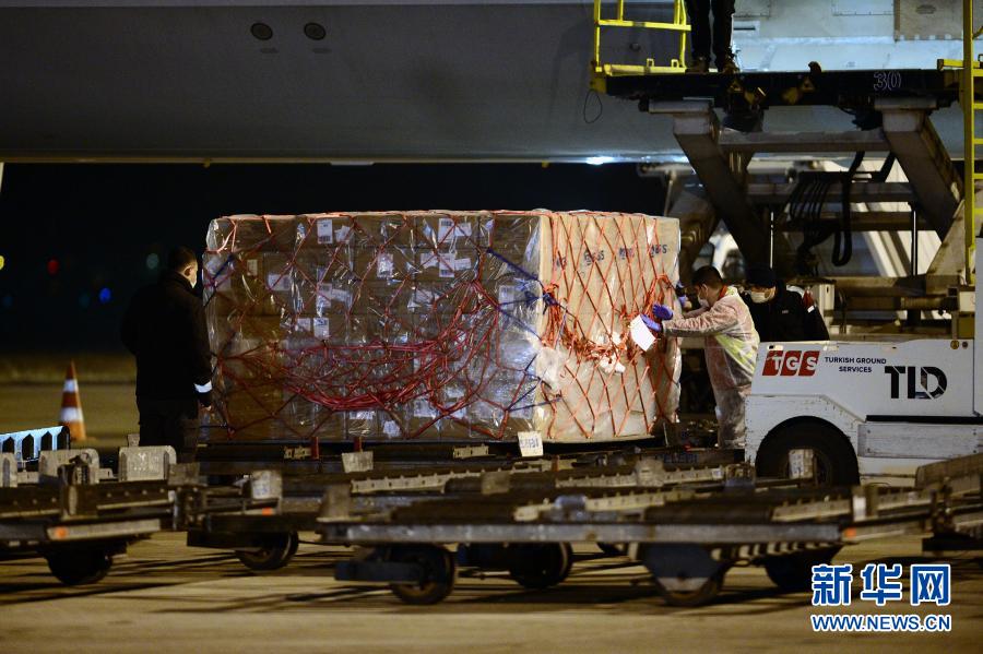 12月30日,在土耳其安卡拉的埃森博阿機場,工作人員從飛機上搬運中國科興公司生產(chǎn)的新冠疫苗。新華社發(fā)(穆斯塔法·卡亞攝)