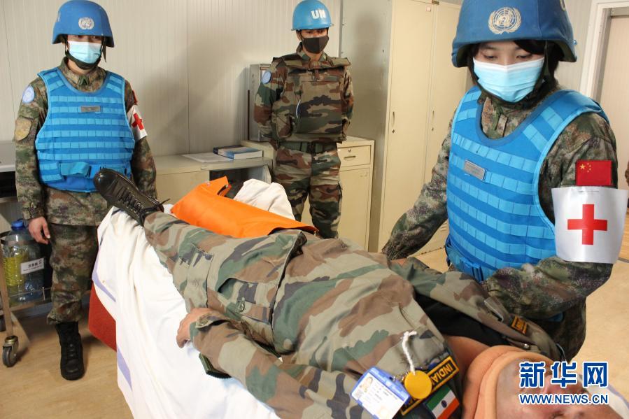 12月29日,中國(guó)第19批赴黎巴嫩維和部隊(duì)醫(yī)療分隊(duì)隊(duì)員參加代號(hào)為“東區(qū)天使2020-Ⅲ”的協(xié)同應(yīng)急醫(yī)療救援演練時(shí)為“傷員”進(jìn)行檢查。新華社發(fā)(雷洋攝)