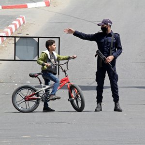4月8日,警察在加沙街頭執(zhí)勤。