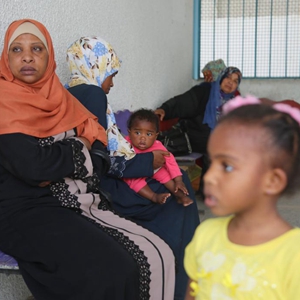 5月17日,受巴以沖突影響而逃離家園的巴勒斯坦婦女和兒童在加沙地帶拉法的一所學(xué)校臨時棲身。