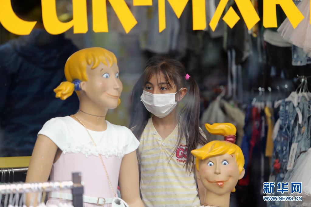 5月17日,一名女孩站在土耳其安卡拉一家服裝店內(nèi)。