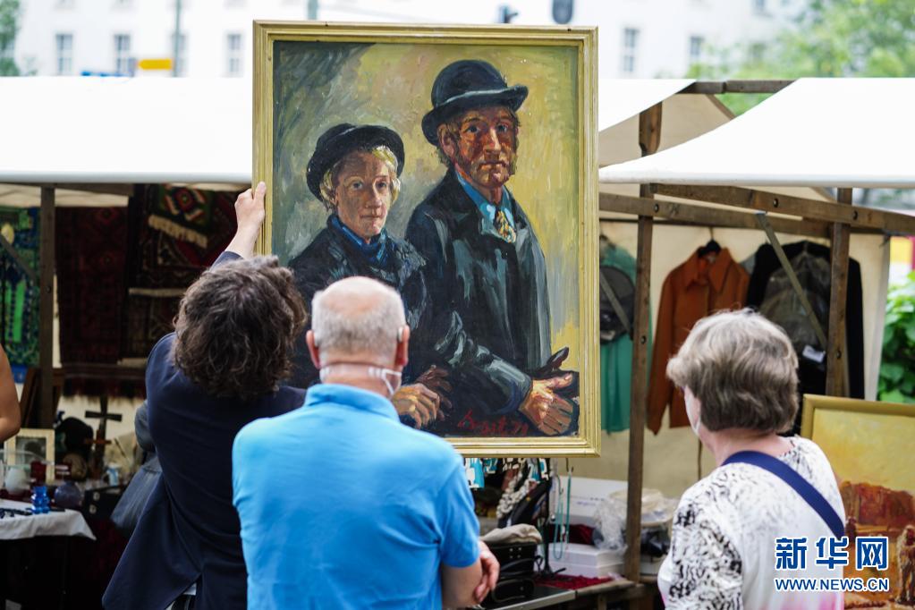 6月6日,人們?cè)诘聡?guó)首都柏林的一處“跳蚤市場(chǎng)”內(nèi)選購(gòu)畫(huà)作。