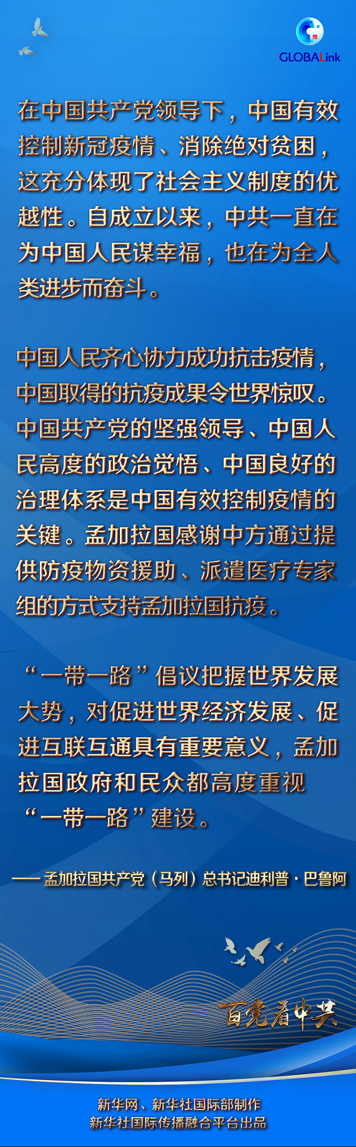 巴魯阿表示,百年來,中國共產(chǎn)黨根據(jù)本國國情不斷繼承和發(fā)展馬克思主義,并在這一過程中實(shí)現(xiàn)發(fā)展壯大。孟加拉國共產(chǎn)黨(馬列)與中國共產(chǎn)黨保持著兄弟般的關(guān)系。1976年以來,兩黨經(jīng)常派遣代表團(tuán)互訪。訪問中國期間,中國共產(chǎn)黨的干部給他留下了深刻印象。巴魯阿說:“他們責(zé)任感強(qiáng)、熱情友好、理論經(jīng)驗(yàn)豐富。在交流中,我們真切感受到,中共在建設(shè)中國特色社會(huì)主義道路上不斷前進(jìn),這讓人欽佩、印象深刻?!?/p>