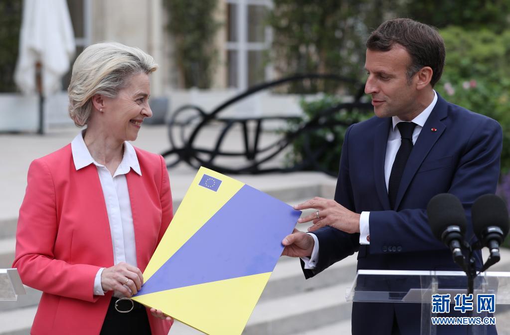 6月23日,法國總統(tǒng)馬克龍(右)與歐盟委員會(huì)主席馮德萊恩在巴黎總統(tǒng)府愛麗舍宮出席新聞發(fā)布會(huì)。